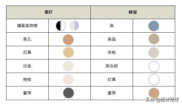 假设有的话是浅色墙,中性色地面,深色家具。这样做是相对来说,墙面颜色浅一些,地面颜色适中,家具颜色深一些,但并不是说家具一定是深色,只是家具颜色要比墙地面深一些。
