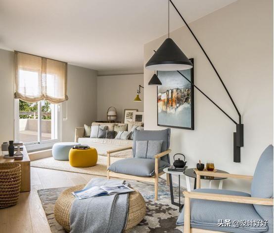 或者是冷色为主色系的中性调,少量的中性冷色墙面,大量的浅色墙面。地面中性暖色,家居浅色中性色,深色混搭。
